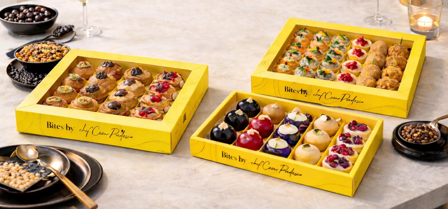 Box-urile nuvelo sunt alternativa modernă la platourile aperitive clasice. Concepute pentru momente importante, acestea oferă experiențe gourmet premium, ușor de ales și gata de servire, fără stresul organizării sau al cantităților greșite. Fie că organizezi un eveniment corporate sau o masă cu invitați, nuvelo înlocuiește platourile aperitive tradiționale cu soluții elegante, predictibile și atent construite.